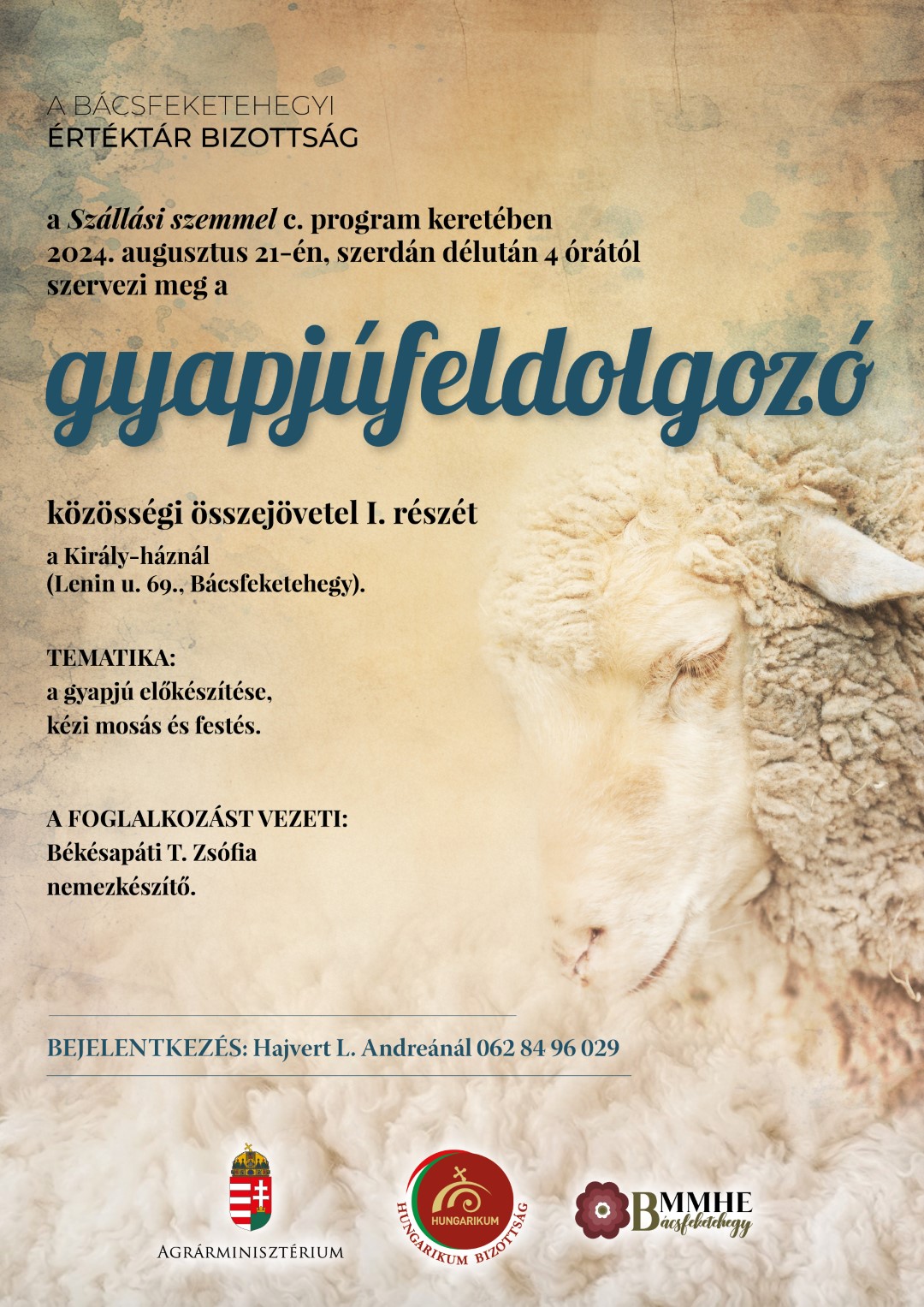 A Szállási szemmel program keretében a bácsfeketehegyi Értéktár Bizottság 2024 augusztusában és szeptemberében gyapjúfeldolgozással kapcsolatos közösségi alkalmakat szervezett – gyapjúmosást, fonást, ...